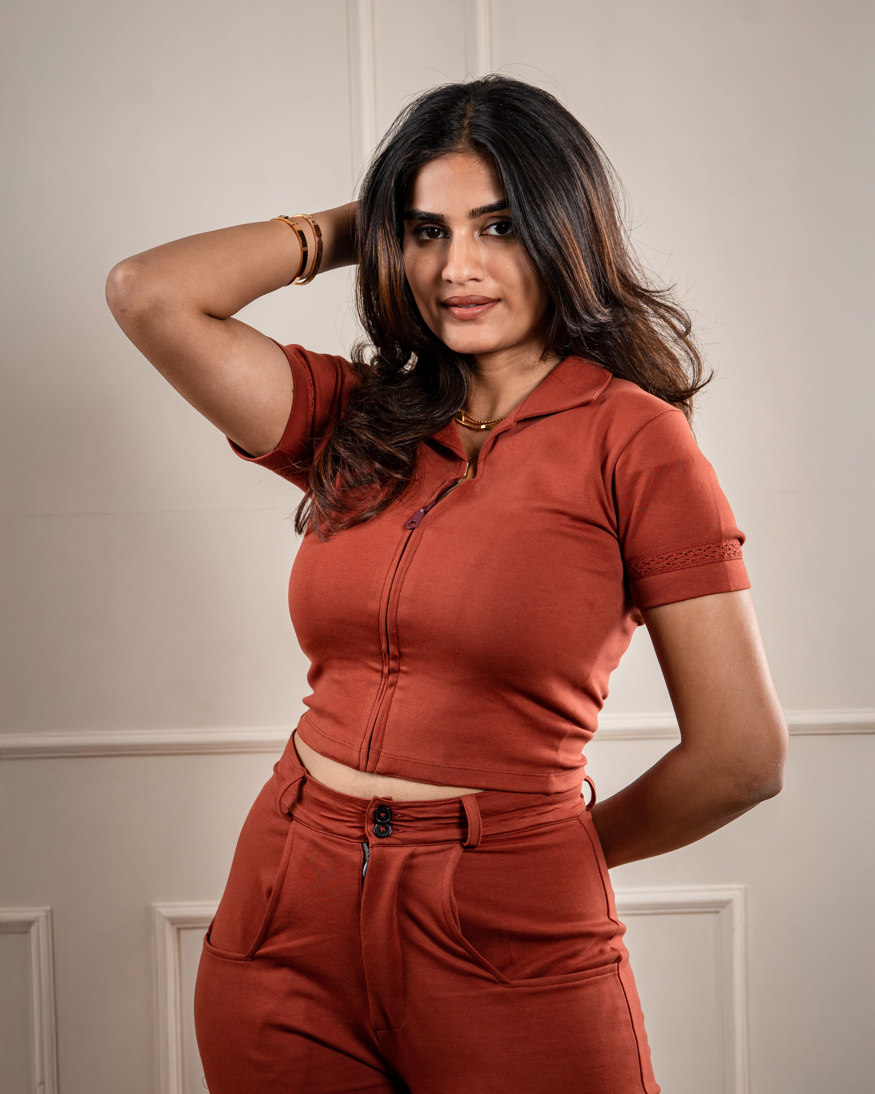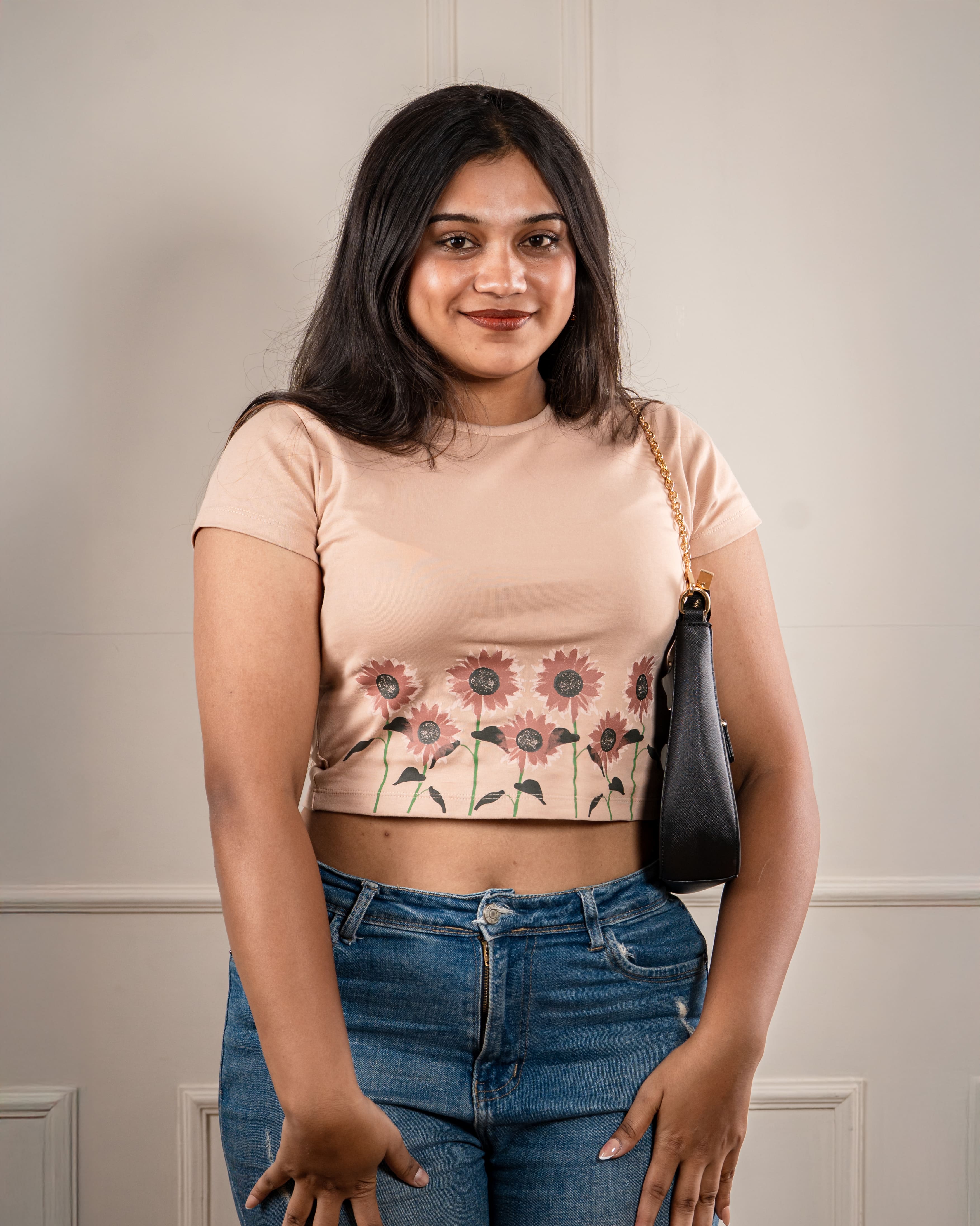 This little crop top is just a sweet addition to your wardrobe. A gentle, fitted cut, and a lovely cropped length, it's designed to sit softly against your form.